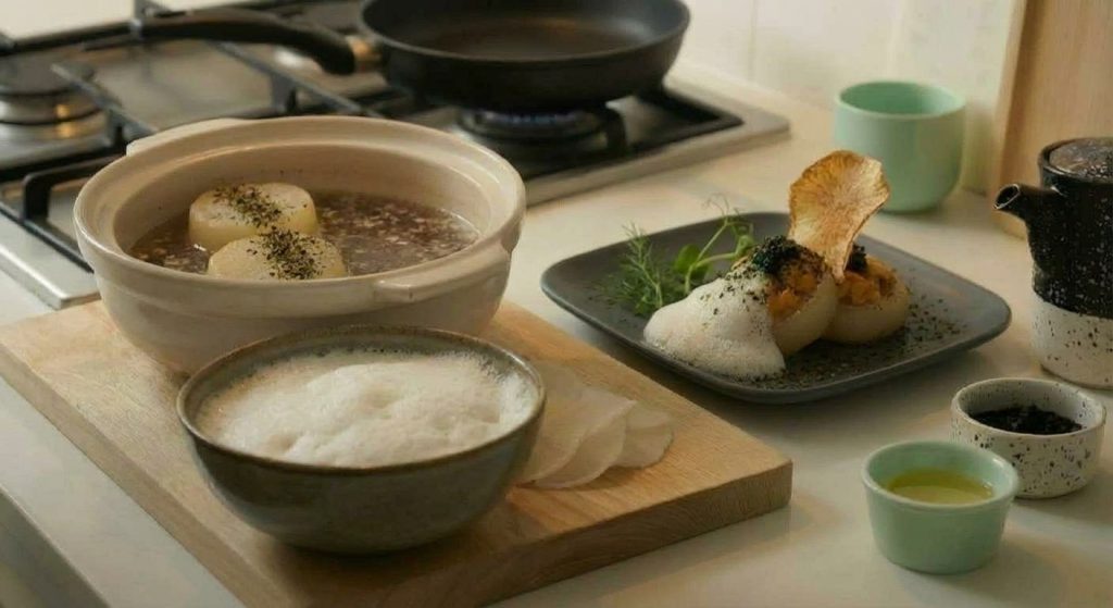 这道“大地根魂:浮空白玉奏鸣曲”是对白萝卜本源的极致探索与升华,是对生命从深沉大地到轻盈浮空的诗意描绘。