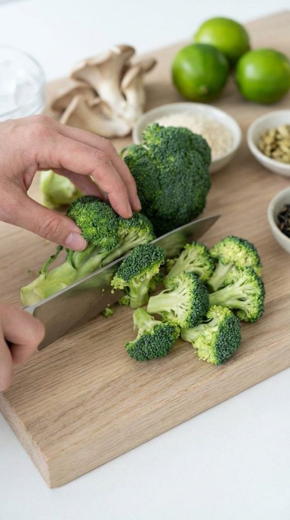 将150g西兰花外围小朵切成2cm大小。取一厚底炒锅或铸铁锅,开最大火力烧热,直至锅底发白(200-220°C)。加入5ml椰子油,待油温达到180-190°C时(或油面开始出现细微波纹,即将冒烟时),分两批(每批75g)投入西兰花,平铺单层。每批煎炒2-3分钟,期间用竹筷或长柄勺轻柔翻动,至西兰花表面出现焦斑,内部仍保持脆生。迅速盛出备用。